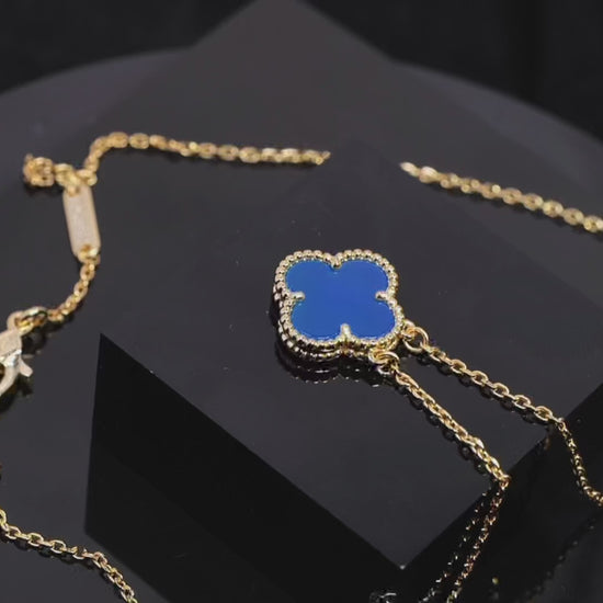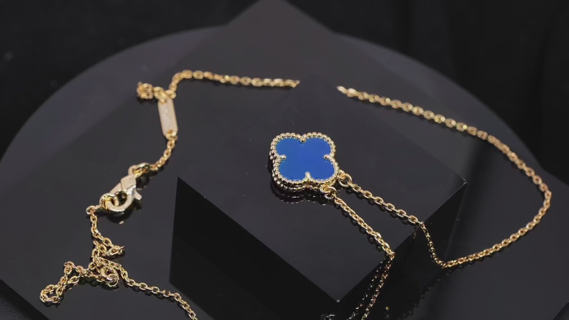 Adjustable length chain blue agate pendant luxury rose gold high-end VCA necklace