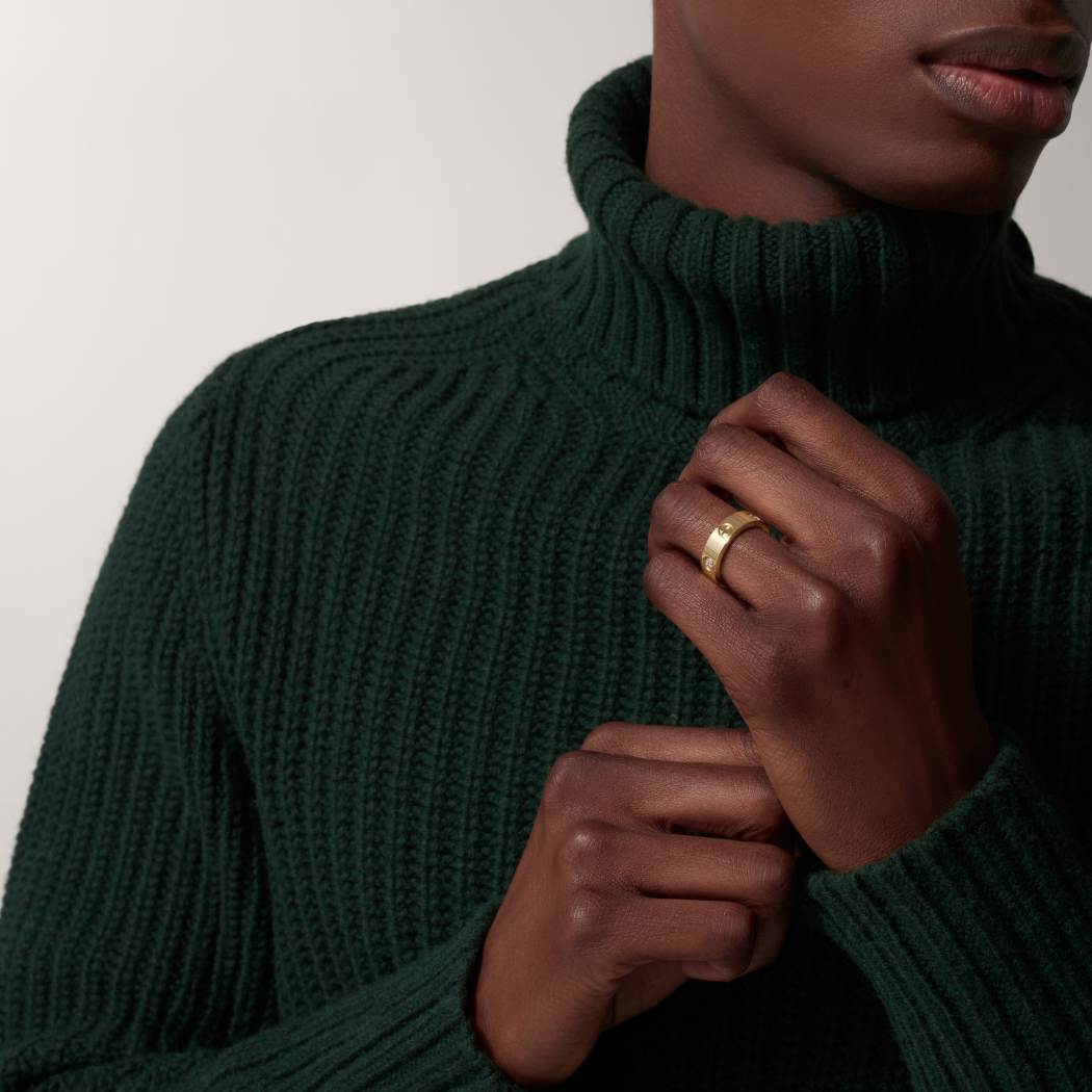 Cartier classic 18K gold LOVE ring adorned with three diamonds