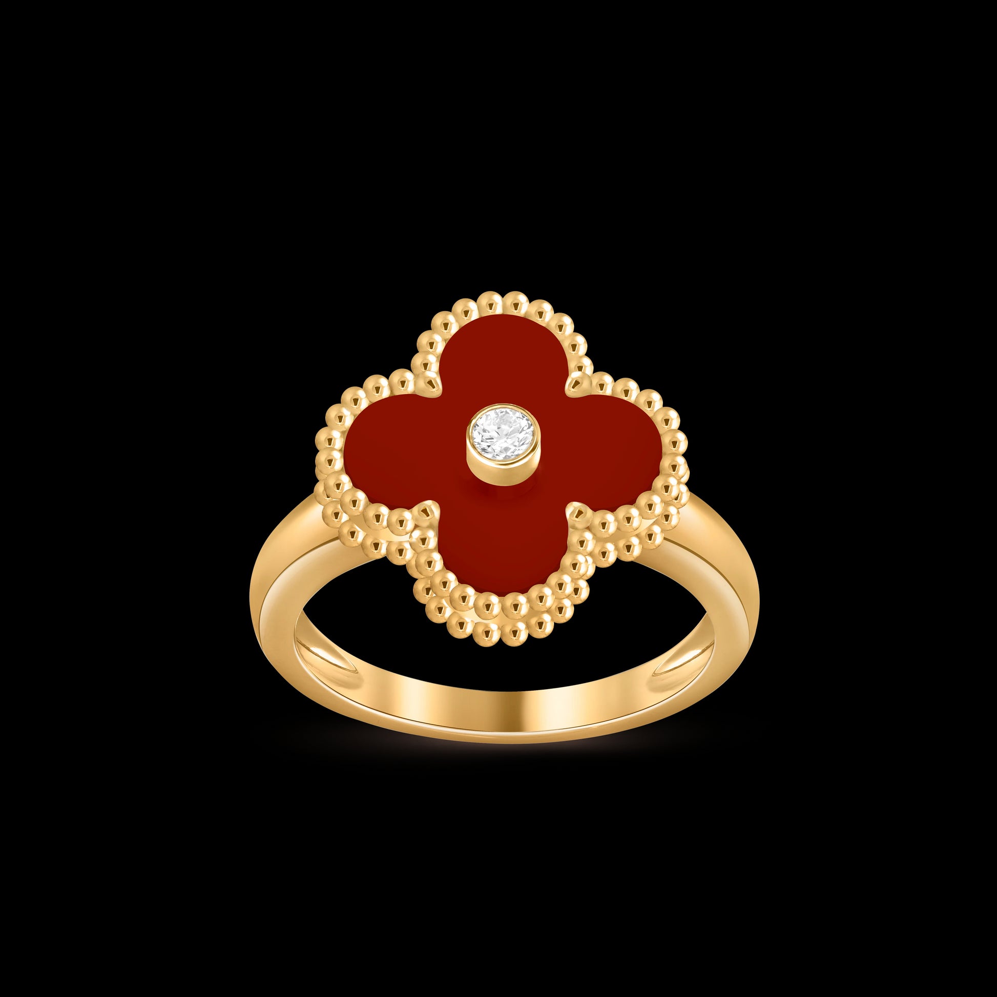 Van Cleef & Arpels 18K gold four-leaf clover ring with carnelian and diamonds