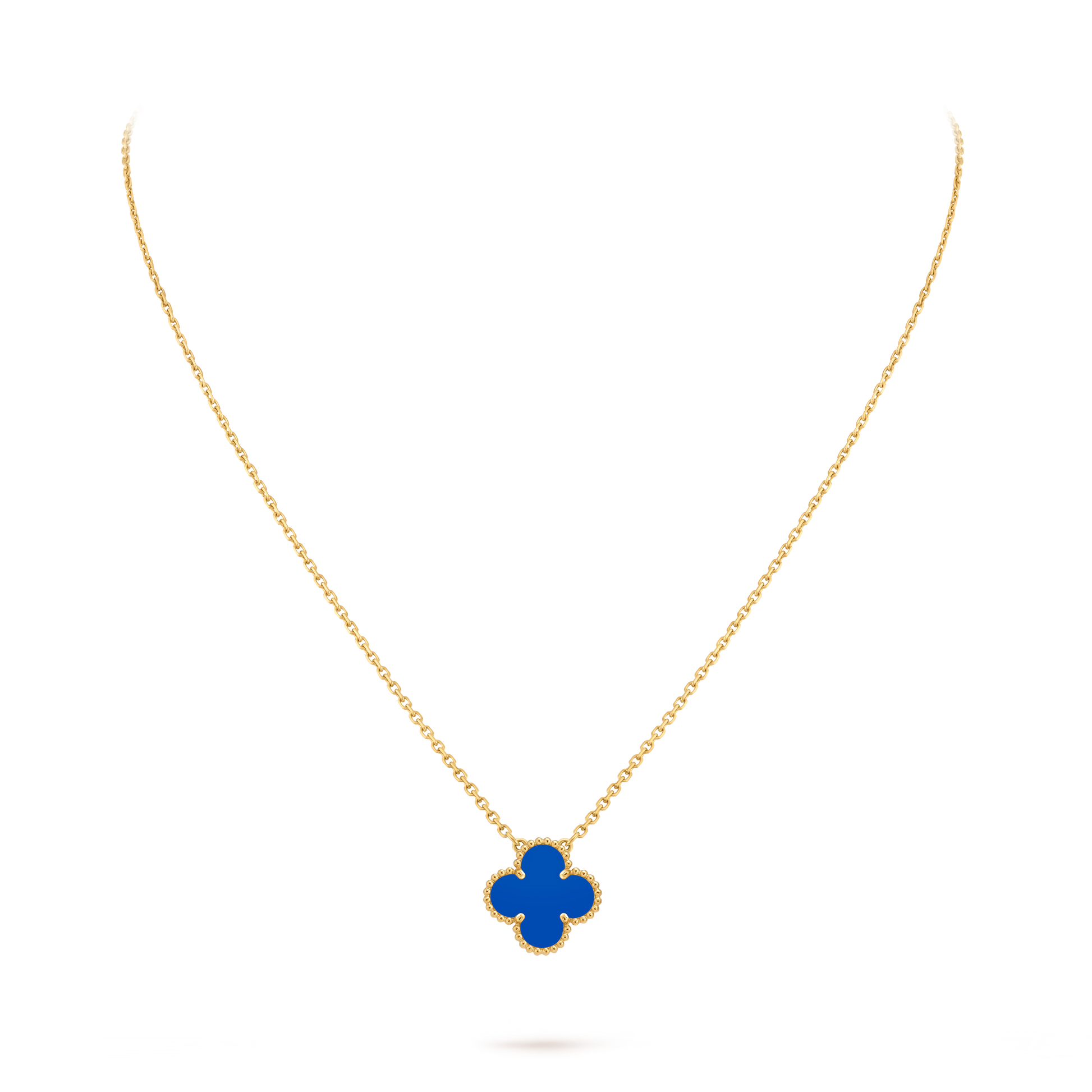 Van Cleef & Arpels Gold Blue Agate Four-Leaf Clover Pendant Vintage Alhambra
