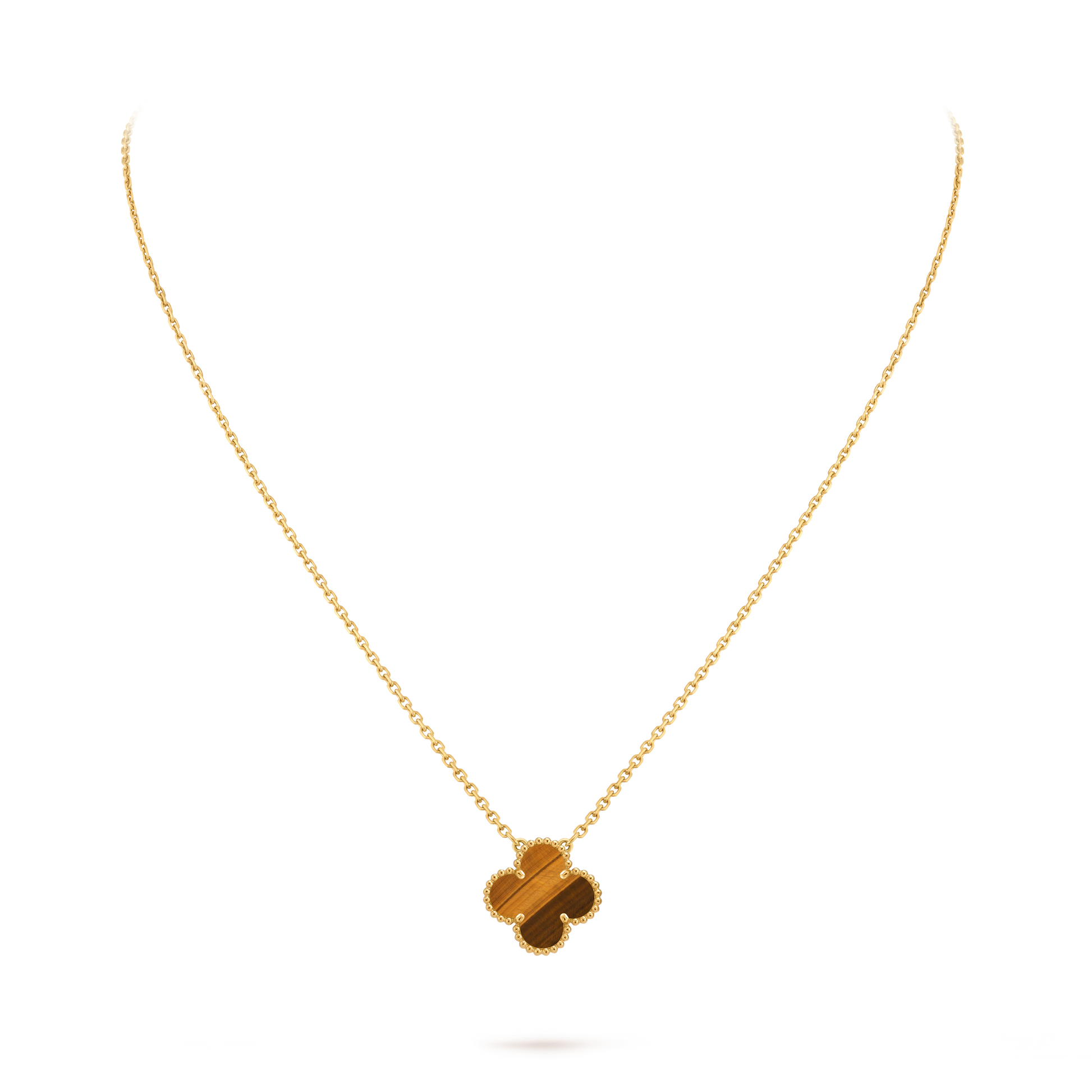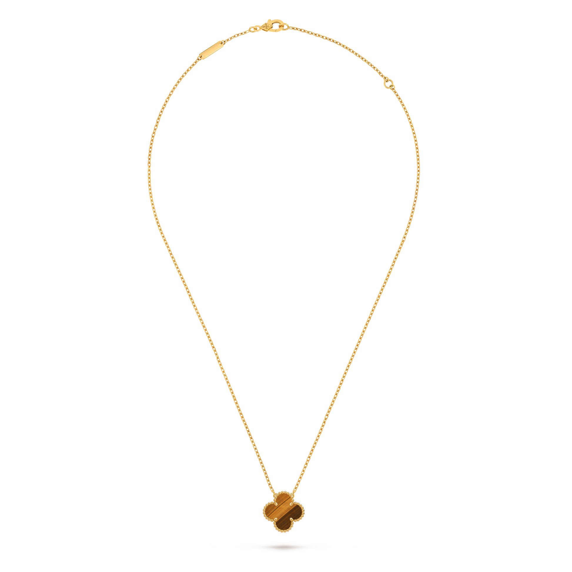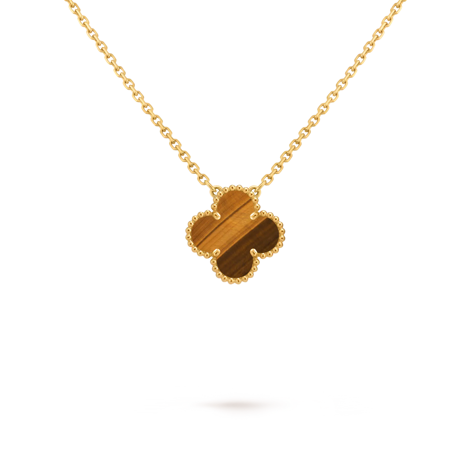Van Cleef & Arpels Gold Four-leaf Clover Pendant Tiger's Eye Necklace Vintage Alhambra